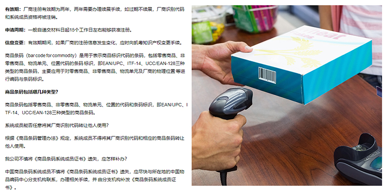 商品條形碼是由一組規(guī)則排列的條、空及其對應(yīng)代碼組成,是表示商品特定信息的標識。商品條形碼具有唯一性的特點,即商品條碼在全 世界范圍內(nèi)是唯一的,同一條碼只識別同一項目,這樣就對產(chǎn)品提供了唯一標識。由于商品標識代碼在全世界范圍內(nèi)是惟一的、通用的、標準的,能作為全球貿(mào)易中信息交換、資源共享的關(guān)鍵字和“全球通用的商業(yè)語 言”,也是進入大型商場的必要的條件之一 。